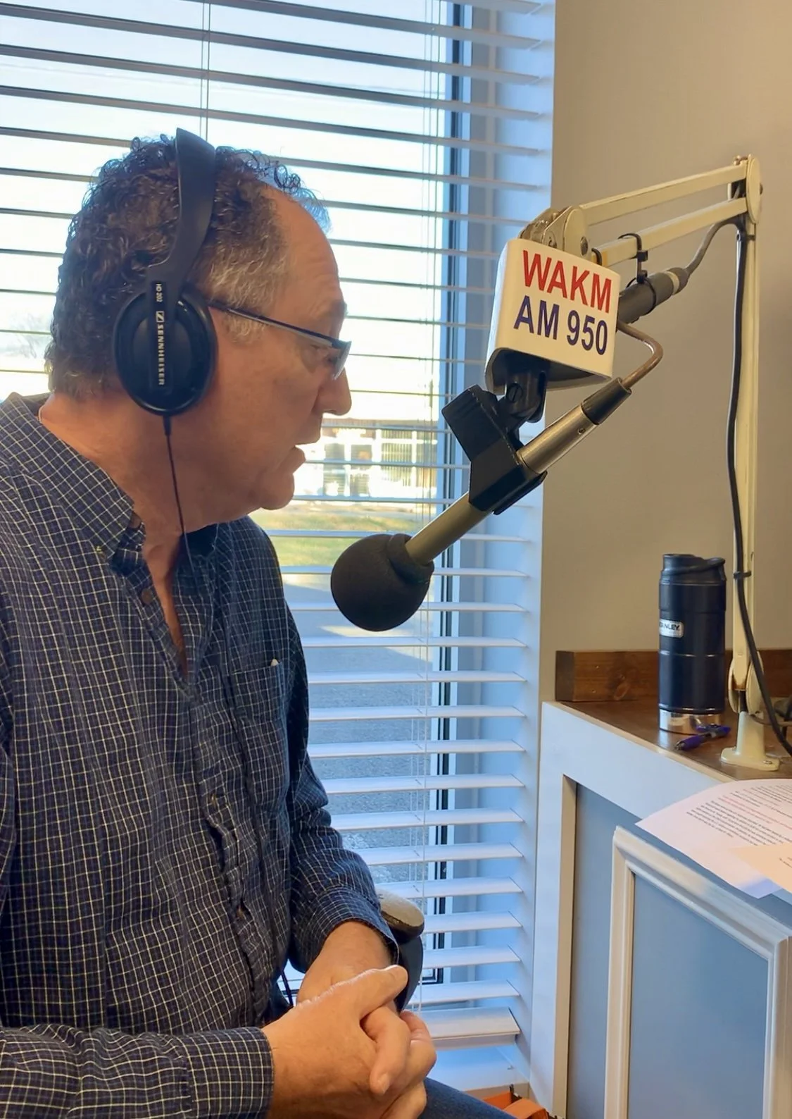 Phil doing an interview at WAKM AM 950 Radio about the release of his book.